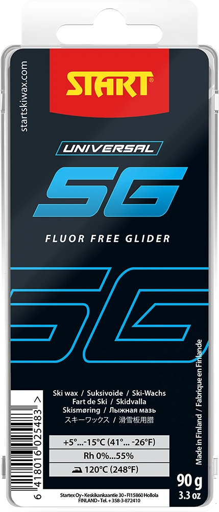 Start SG -luistovoiteet SG-luistovoiteet ovat fluorittomia ja edullisia perusluistovoiteita. Käyttö kilpahiihdossa alusvoiteina, kun ilman suhteellinen kosteus on < 55 %.